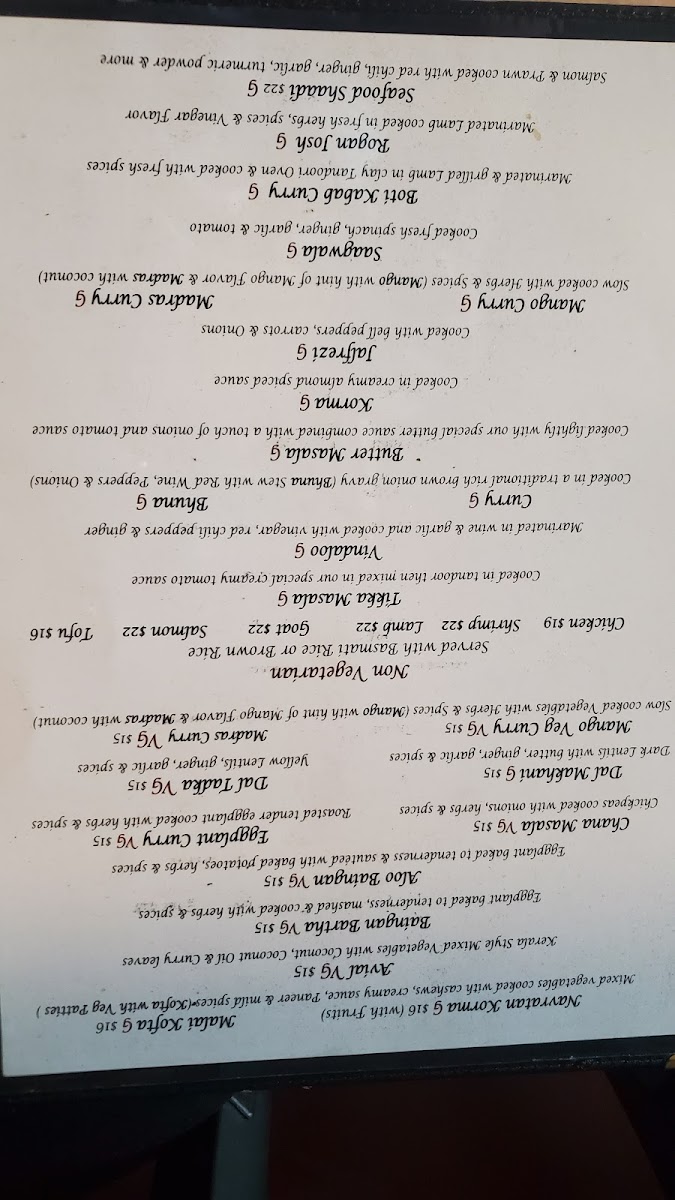 When it comes to main courses, the restaurant excels with its Non-Vegetarian options. The Boti Kabob Curry and the rich, flavorful Rogan Josh are must-tries, along with the Butter Masala and Seafood Shaadi Curry. For a classic experience, you can opt for the Vegetarian Entrées like the creamy Paneer Tikka Masala or the flavorful Palak Paneer, while the Vegetable Curry and Aloo Gobi & Capsicum Masala provide delightful vegetarian choices.
